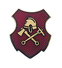 Das Abzeichen für die Feuerwehr in Wappenform mit gekreuzten Äxten und Feuerwehrhelm ist das perfekte Symbol für den Einsatz und die Hingabe von Feuerwehrleuten. Es ist sowohl als Auflage für Orden und Auszeichnungen erhältlich. Ein Muss für jedes Ehrenzeichen in der Feuerwehr.