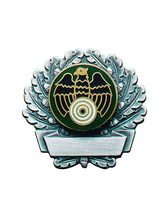 Die Scharniernadel sorgt für eine sichere Befestigung, während die Auflagefläche Platz für zusätzliche Symbole wie die Zielscheibe mit Adler bietet. Durch den Orden-Designer können Sie das Abzeichen nach Ihren Wünschen gestalten und eine individuelle Gravur hinzufügen, um es noch persönlicher zu machen.