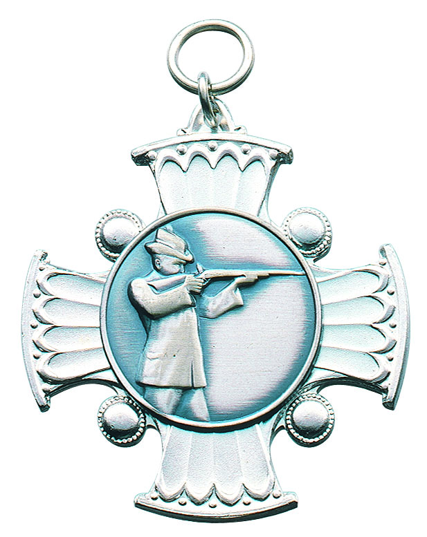 Dieser Schützenorden in kreuzähnlicher Form überzeugt durch seine klassische Gestaltung und individuelle Altsilber-Auflage. Mit einer Größe von ca. 48 mm x 52 mm und einer galvanischen Veredelung ist der Orden besonders widerstandsfähig. Der Speziallack schützt das Metall vor Feuchtigkeit und Schmutz, sodass der Orden auch bei regelmäßiger Nutzung stets in Top-Zustand bleibt.