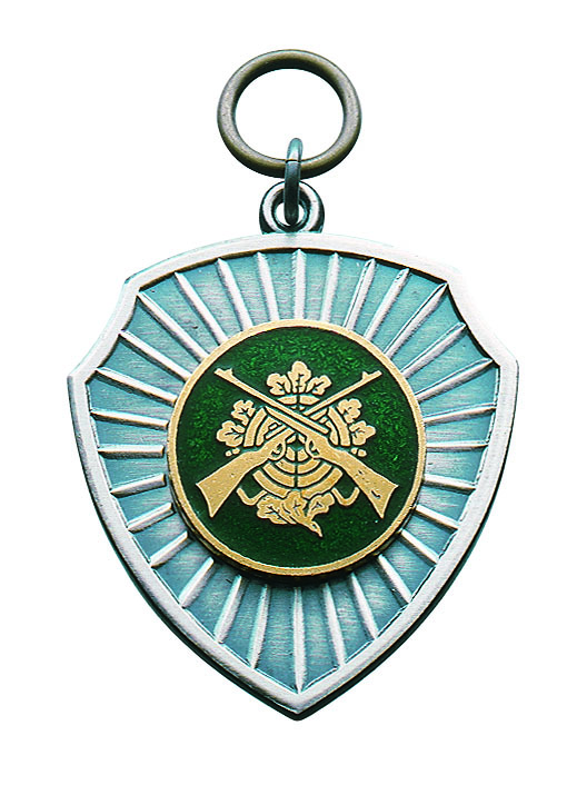 Anhänger mit Schützenadler, Eichenlaub und gold-grüner AuflageAnhänger in freier Form mit Adler, Eichenlaub und goldener Auflage mit grünem SchützensymbolGröße ca. 33 mm x 45 mmAbgebildete Auflage: Auflage "Zielscheibe mit Gewehren" (57562)Oberfläche mit galvanischer Veredelung (Schutzschicht) für besonders hohe WiderstandsfähigkeitVersehen mit einem feinen Speziallack, der das Metall, auch Silber, vor Feuchtigkeit und Schmutz schütztMit Öse und Ring zur sicheren BefestigungErhältlich in vergoldet, versilbert, Altsilber und BronzeDieser Orden kann durch eine individuelle Gravur veredelt werden.