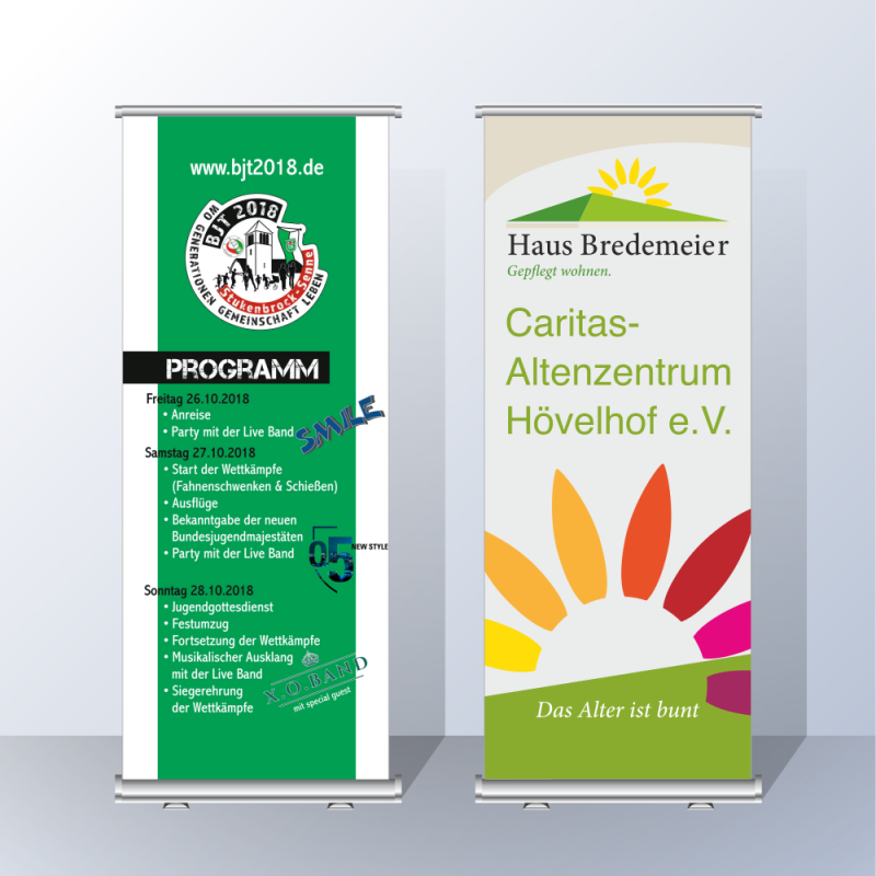 Die Vielseitigkeit unserer Banner erstreckt sich über verschiedene Events und Anlässe, wobei der Digitaldruck für brillante Farben und gestochen scharfe Details sorgt. Für Sportveranstaltungen verleihen wir deinen Bannern dynamische Grafiken, während wir für festliche Anlässe wie Geburtstage oder Schützenfeste eine anmutige Ästhetik schaffen. Egal welcher Anlass, unsere Banner im großem Format setzen eine beeindruckende Bühne für deine Botschaft, wobei der Digitaldruck für höchste Qualität und visuelle Wirkung sorgt.