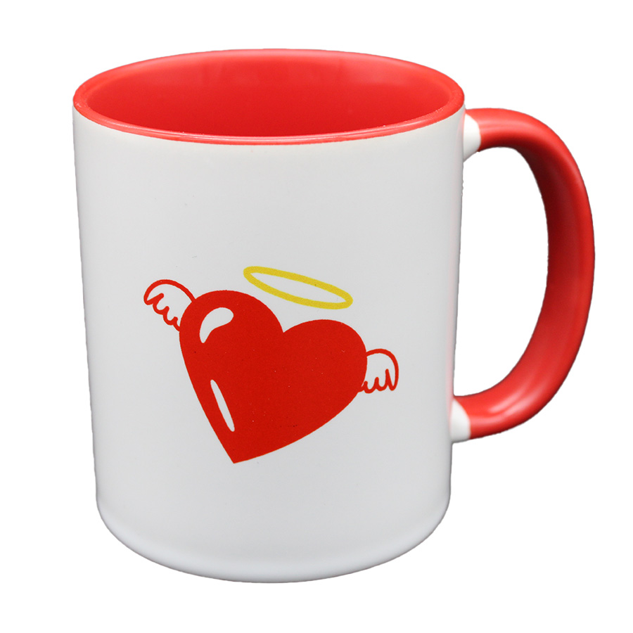 Weiße Tasse mit rotem Henkel und witzigem Spruch – Geschenkidee mit Herz
