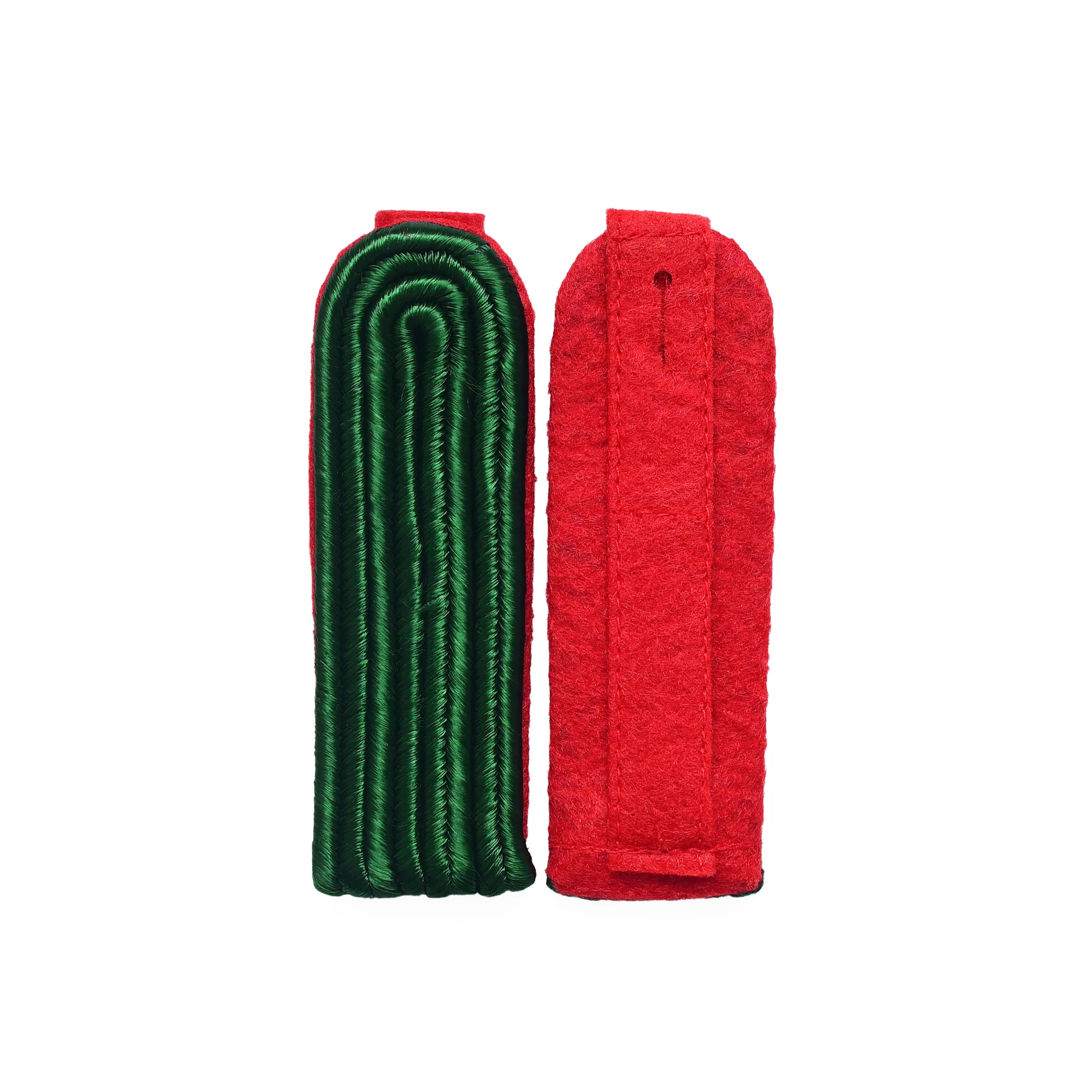 4-streifige Schulterstücke Grün – auf rotem Filz | ca. 11 × 3,5 cm