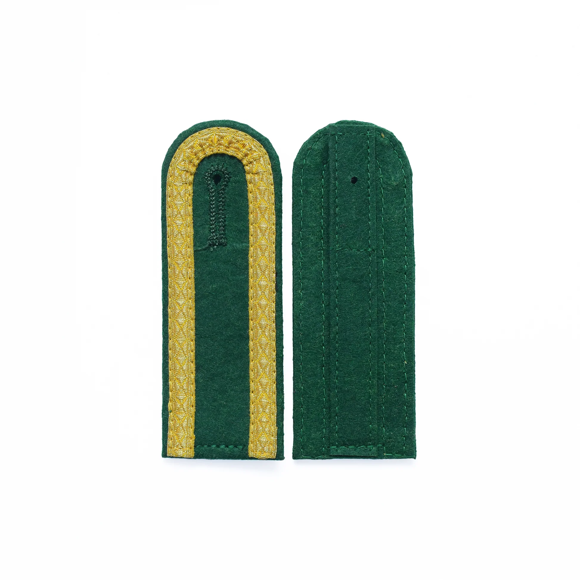 Schulterklappen rund mit Goldtresse – 3-seitig | auf grünem Filz | ca. 40 × 110 mm