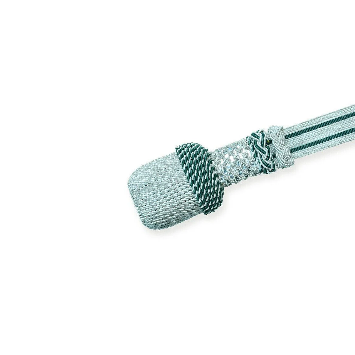 Portepee Silber – inox Draht mit grüner-silber Tresse | ovale Quaste | ca. 48 cm