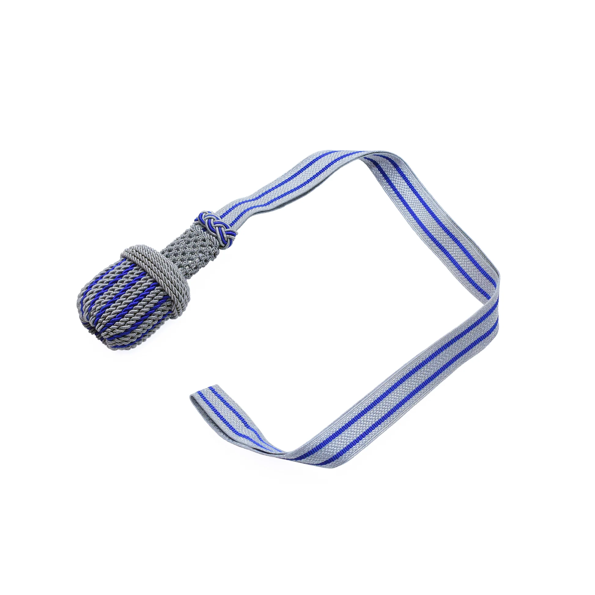 Portepee Silber – inox Draht mit blauer Tresse | ovale Quaste | ca. 48 cm