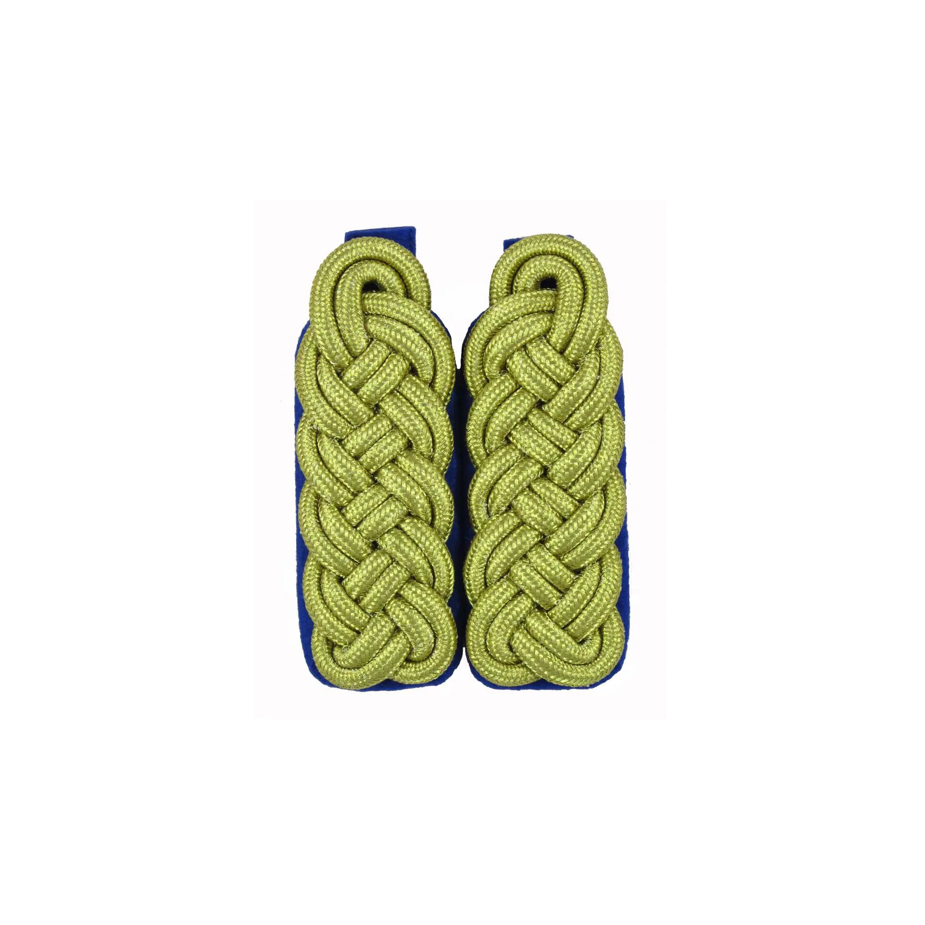 Gefertigt aus 6 mm starker Rundschnur mit goldfarbigem inox. Metallgespinst, überzeugt dieses Schultergeflecht durch seine hochwertige Verarbeitung, hohe Formstabilität und langlebige Qualität. Die blaue Filzunterlage bildet einen eleganten, ruhigen Kontrast zum goldfarbenen Geflecht und verleiht der Uniform eine repräsentative, ausgewogene Wirkung.