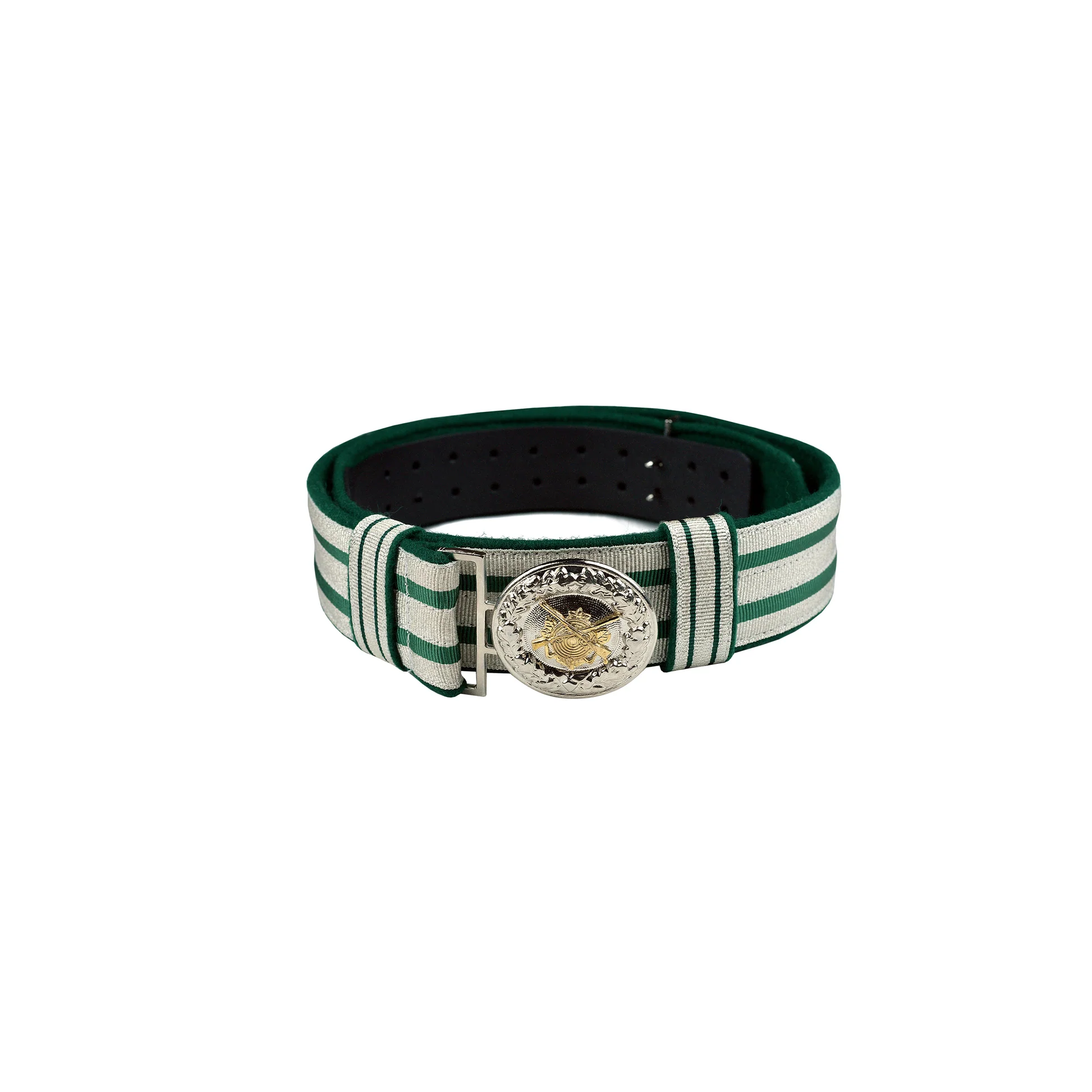 Die Feldbinde in Grün mit silbernen Streifen (grün National) ist ein klassisches und hochwertiges Uniform- und Rangaccessoire für Schützenvereine. Sie steht für Funktion, Rang und Repräsentation und wird traditionell von Offizieren, Vorständen oder besonderen Funktionsträgern getragen.