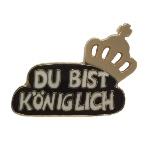Spaßabzeichen Blau – „Du bist königlich“ für den HofstaatEin edles Abzeichen mit goldener Krone auf royalblauem Hintergrund – perfekt für alle, die im Hofstaat eine königliche Ausstrahlung haben möchten! Ob am Revers, auf der Uniform oder als Sammlerstück: Dieses Schmuckstück ist ein echter Hingucker für jede Schützenveranstaltung. Produktdetails auf einen Blick:Design: Goldene Krone mit dem Schriftzug „Du bist königlich“ auf blauem HintergrundGröße: ca. 37 mm x 27 mm – auffällig und elegantFarbe: Blau mit goldener PrägungMaterial: Hochwertig geprägtes MetallBefestigung: Doppelter Butterfly-Verschluss – für sicheren Halt an Kleidung oder UniformBesonderheit: Eingetragenes Design – exklusiv bei EinzigArt erhältlich Ideal für den Schützen-HofstaatDieses festlich gestaltete Abzeichen bringt Humor, Stolz und Teamgeist in Deinen Auftritt. Egal ob Du König, Königin oder Teil des Hofstaates bist – mit diesem Abzeichen zeigst Du Haltung und Spaß am Schützenfest. Und falls mal ein Butterfly-Verschluss verloren geht: Bei EinzigArt kannst Du ihn einfach nachbestellen.