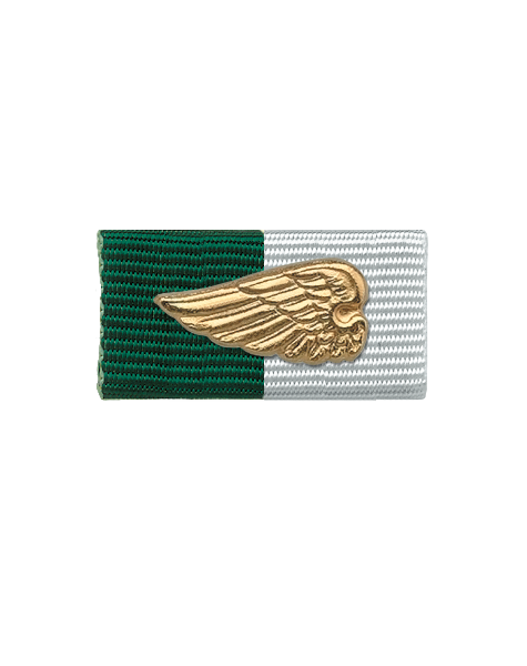 Die Bandschnalle "Rechter Flügel" ist das perfekte Accessoire für Ihre Schützenuniform. Sie kommt in einer grün-weißen Ausführung und zeigt das vergoldete Flügel-Motiv. Mit der Sicherheitsnadel können Sie die Schnalle sicher an Ihrer Kleidung befestigen.