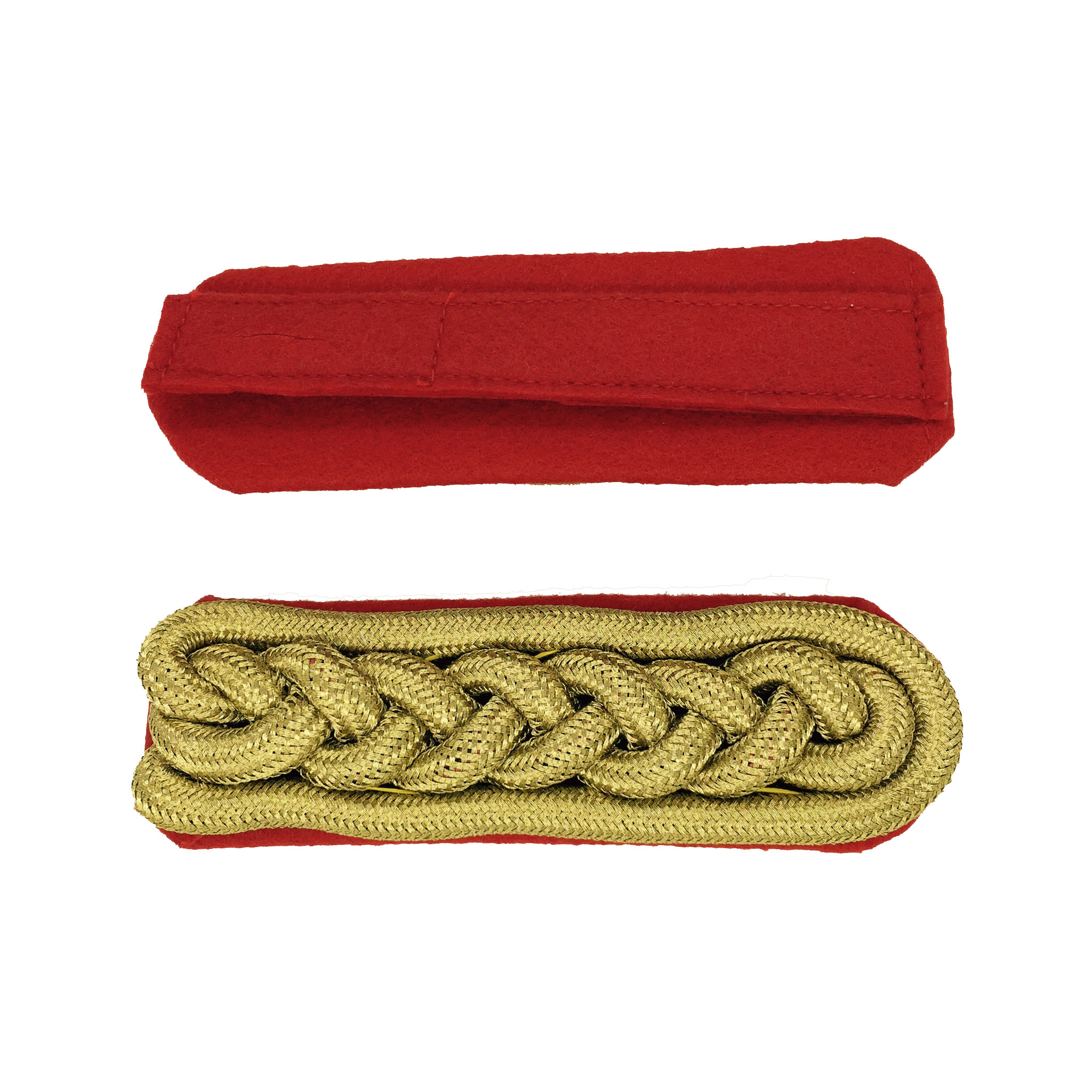 Leutnantsgeflecht Gold – 5-bogig | auf rotem Filz | ca. 11 × 4 cm