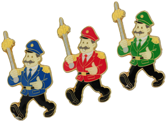Dieses kunstvoll gestaltete Musikerabzeichen zeigt einen Tambourmajor in einer klassischen blauen Jacke und einer eleganten weißen Hose. Die Kombination dieser Farben hebt den führenden Charakter des Tambourmajors hervor und ist ein echter Blickfang bei Schützenfesten, Umzügen und Vereinsauftritten.