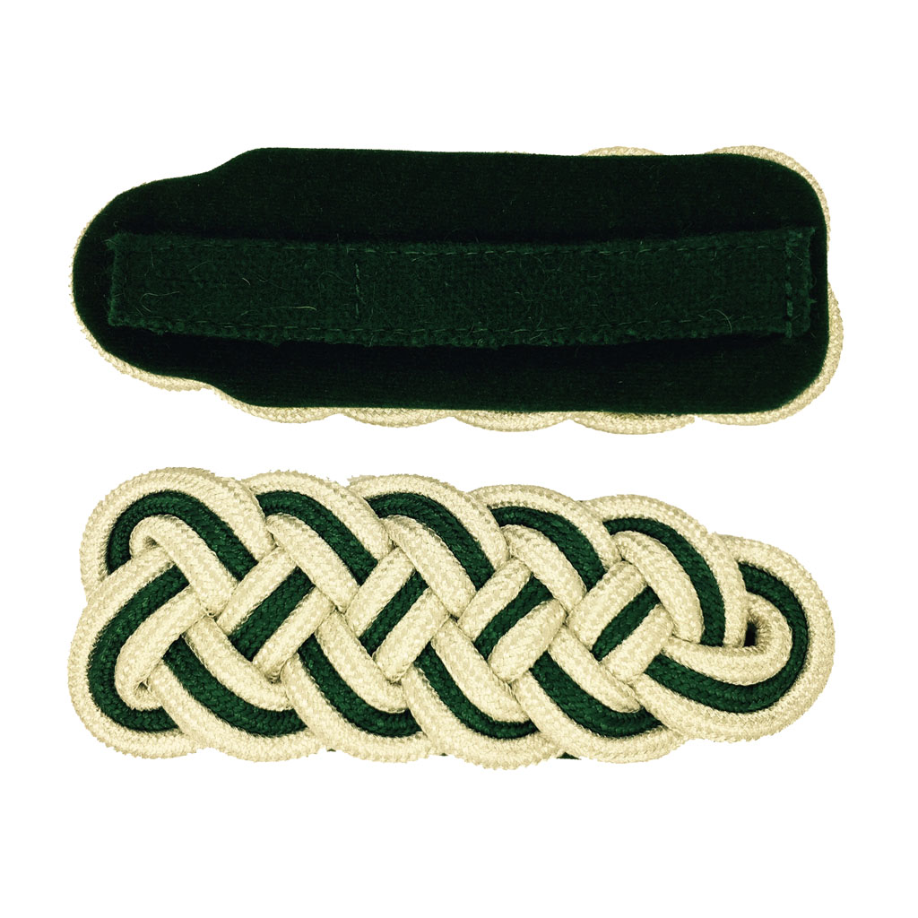 Schultergeflechte stehen in Schützenvereinen ausschließlich für Rang und Funktion. Die Farbstellung Silber-Grün-Silber wirkt ausgewogen, ruhig und traditionsnah und sorgt für ein gepflegtes Erscheinungsbild bei Festzügen, Veranstaltungen und offiziellen Anlässen.
