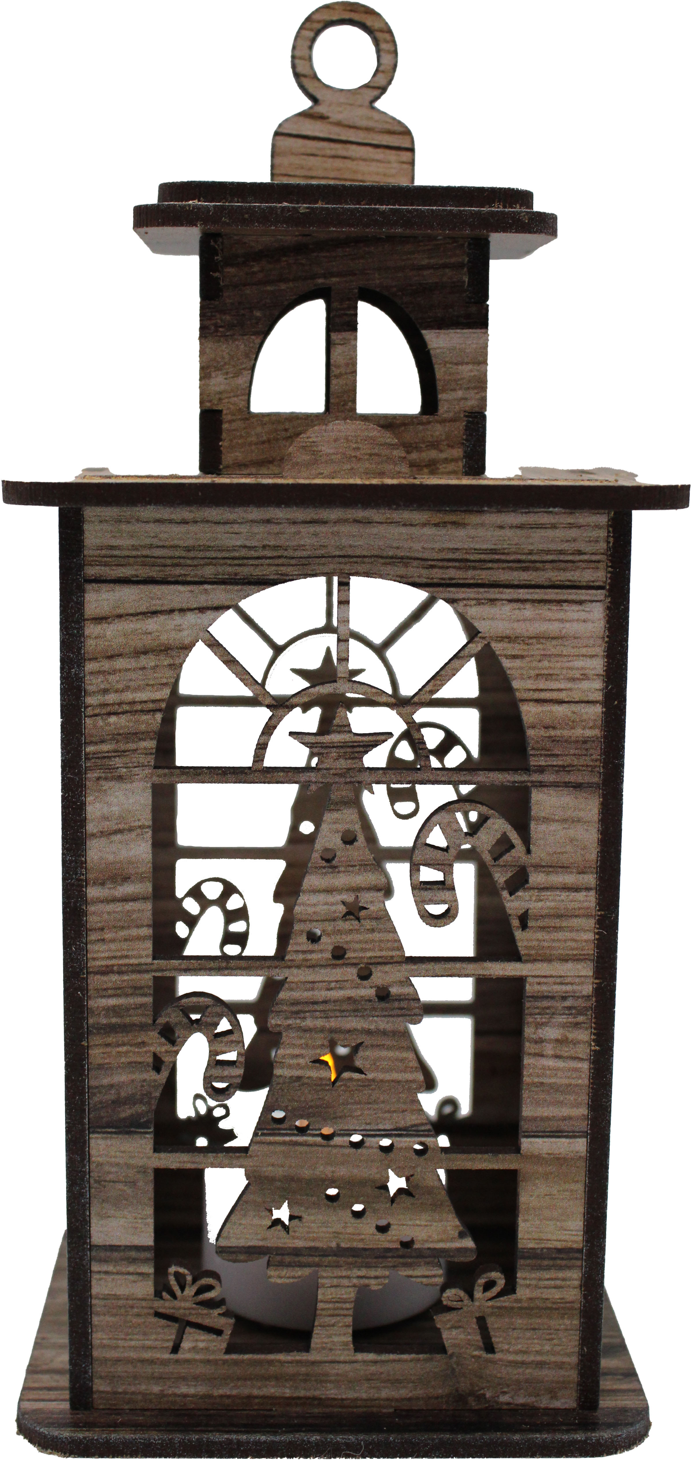 Produktinformationen "Holzlaterne handgefertigt mit Motiv Weihnachtsbaum incl. LED Licht"