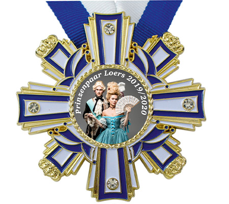 Im Zentrum des Ordens befindet sich ein 30 mm großes Druckfeld, das sich ideal für individuelle Anpassungen eignet. Hier hast du die Möglichkeit, entweder einen einfarbigen Schwarzdruck oder einen farbigen Photodruck anzubringen, um den Orden ganz nach deinen Wünschen zu gestalten. Egal ob Vereinswappen, Logo der Karnevalsgesellschaft oder ein persönliches Motto – dieses Druckfeld macht den Orden zu einem einzigartigen Unikat.
