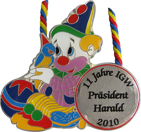 Die farbenfrohe Kordelaufhängung in Rot, Gelb und Blau rundet das Design ab und macht den "Niedlichen Clown" zu einem idealen Orden für Umzüge, Sitzungen oder als besondere Auszeichnung. Ein perfektes Erinnerungsstück für jede Karnevalsfeier!