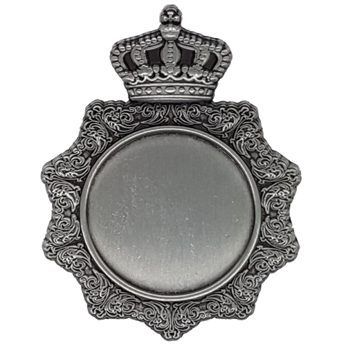 Dieses ausdrucksstarke Abzeichen in Sternform mit Krone ist wie gemacht für Schützenkönige, Ehrenkönige oder Jubiläumsträger. Die Kombination aus geprägter Krone, reliefartigem Stern und individualisierbarer Fläche macht es zu einem eindrucksvollen Ehrenzeichen mit Wiedererkennungswert.