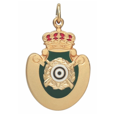 Dieser edle Königsanhänger überzeugt durch seine grüne Hintergrundfarbe und die goldene Auflage, sowie die schwarz-weiße Zielscheibe und die rot hinterlegte Krone. Ein perfektes Schmuckstück für jeden Schützenkönig.
