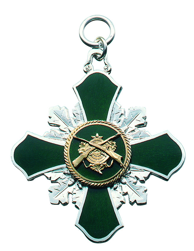 Der Orden abgerundetes Kreuz in grün/silberfarbig (ca. 50 mm x 50 mm) besticht durch sein elegantes Design. In versilberter Ausführung und mit einer grünen Farbe bietet dieser Orden eine edle Möglichkeit, besondere Leistungen auszuzeichnen.