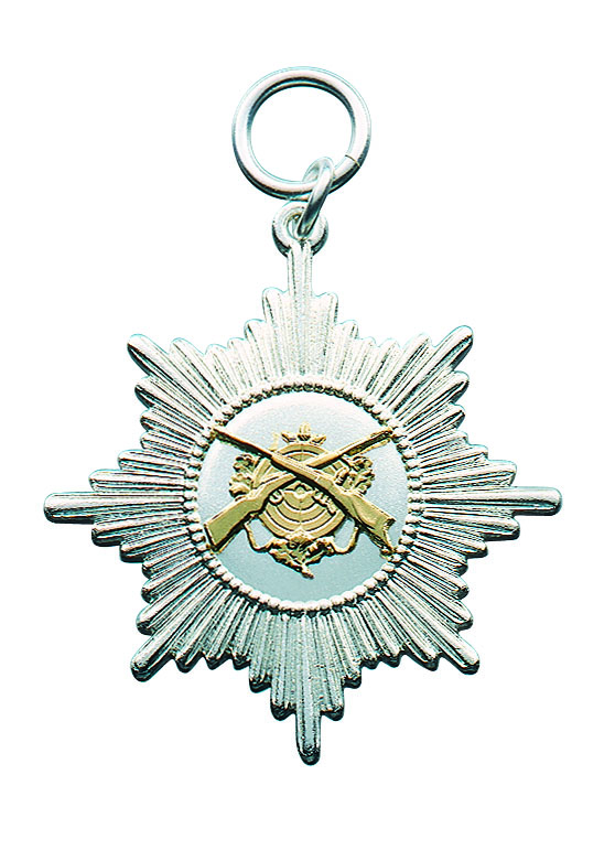 Dieser Sternorden mit Schützensymbol (ca. 40 mm x 40 mm) ist in zwei eleganten Ausführungen erhältlich: versilbert und echt silber-versilbert. Die Öse und der Ring ermöglichen eine einfache Befestigung.