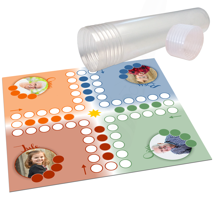 Neben den 4 individuell wählbaren Fotos enthält das Set alles, was Du für eine Runde des Spiels brauchst: Spielfiguren und Würfel. So kannst Du direkt loslegen und das Spiel in Deinem einzigartigen Design genießen. Das bunte und fröhliche Layout der Spielfläche sorgt für noch mehr Spielspaß, während Deine persönlichen Fotos das Spielerlebnis unvergesslich machen.