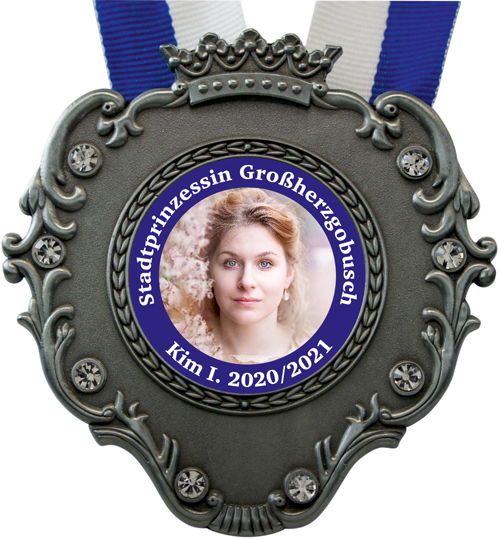 Das 40 mm große Druckfeld bietet dir die Möglichkeit, den Orden individuell mit einem Schwarzdruck oder einem farbenfrohen Photodruck zu gestalten. Das passende blau-weiße Halsband verleiht dem Orden den letzten festlichen Schliff, perfekt für besondere Auszeichnungen oder das Prinzenpaar.