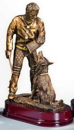 Resinfigur Figurant mit Schutzhund - auf einem Sockel