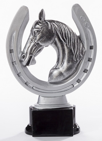 Resinfigur Reitsport - Hufeisen - auf einem schwarzen Sockel