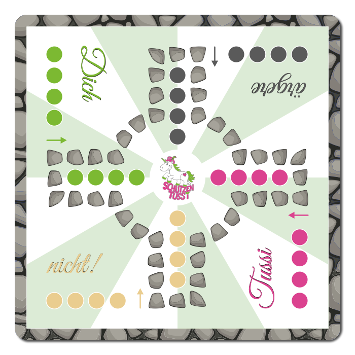 - Spielfläche im Tussidesign, erhältlich als Brettspiel oder Rollenspiel