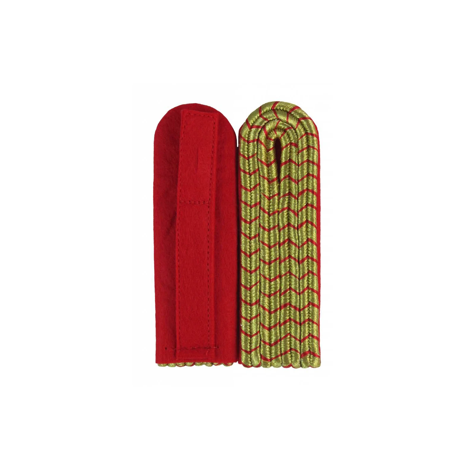 4-streifige Schulterstücke Gold mit rotem National – auf rotem Filz | ca. 11 × 3,5 cm