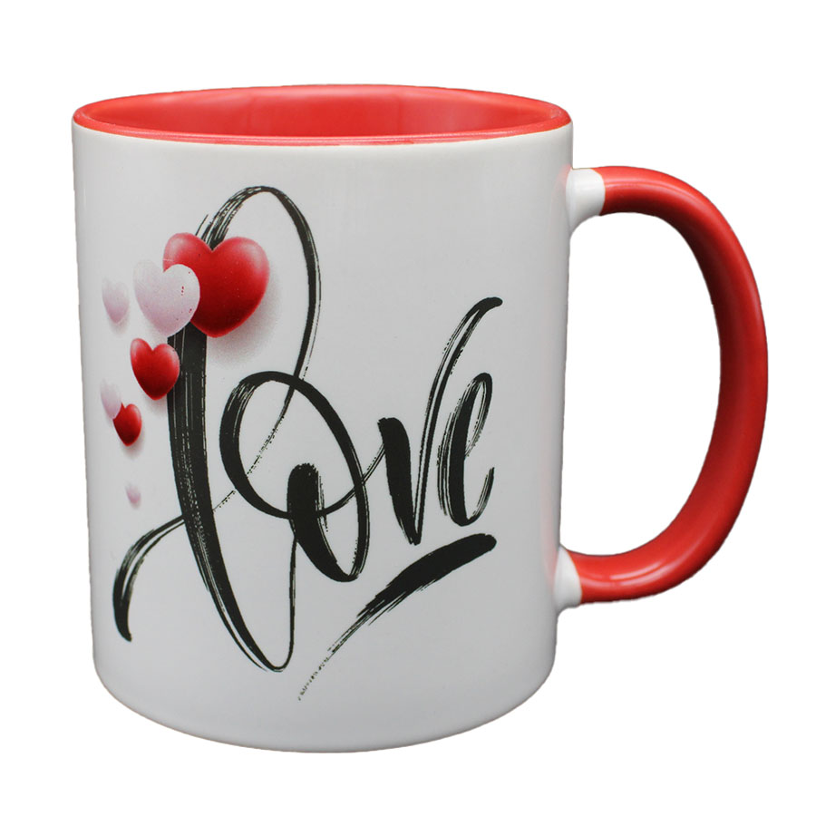 Weiße Tasse mit rotem Henkel und liebevollem Design – Perfekte Geschenkidee für Verliebte