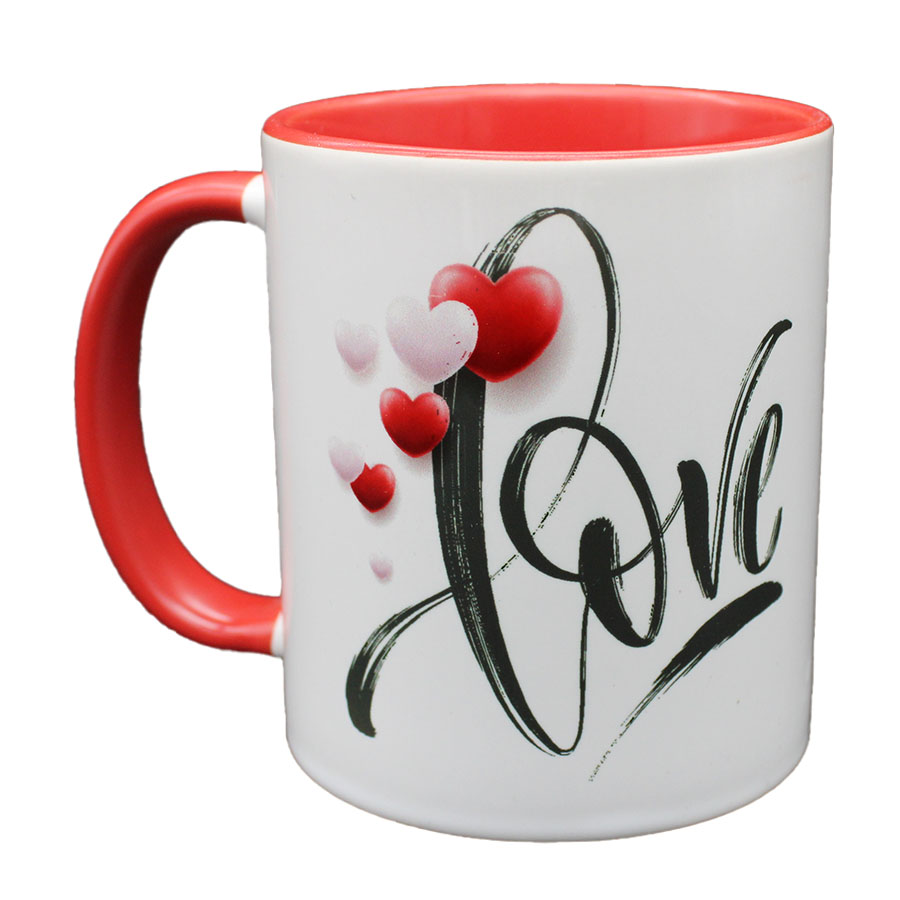 Verschenke Liebe mit unserer bezaubernden Tasse! Diese weiße Tasse mit roter Innenseite und rotem Henkel ist nicht nur ein stilvoller Blickfang, sondern auch ein Ausdruck von Zuneigung. Auf beiden Seiten ist der romantische Aufdruck "Love" in eleganter Schreibschrift zu sehen, umrahmt von zauberhaften Herzen, die das Design perfekt abrunden.