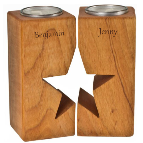 - Individuelle Gravur: Oberhalb des Sterns können zwei Namen eingraviert werden, die den Teelichtständer zu einem ganz persönlichen Unikat machen.