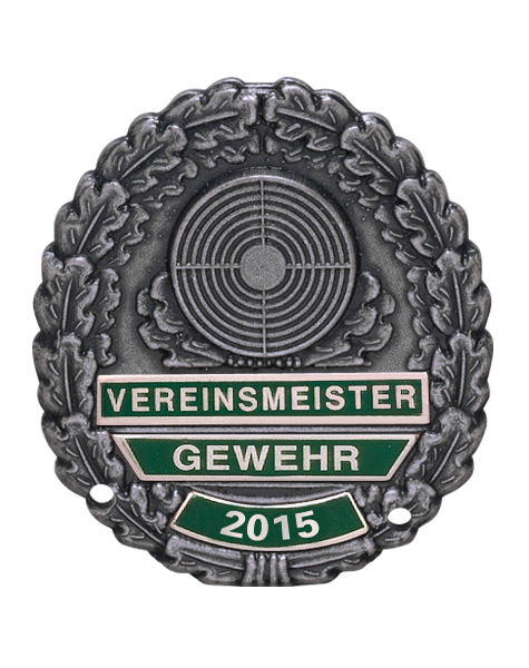 Vereinsmeisterabzeichen mit Jahreszahl und Disziplin für Schützen